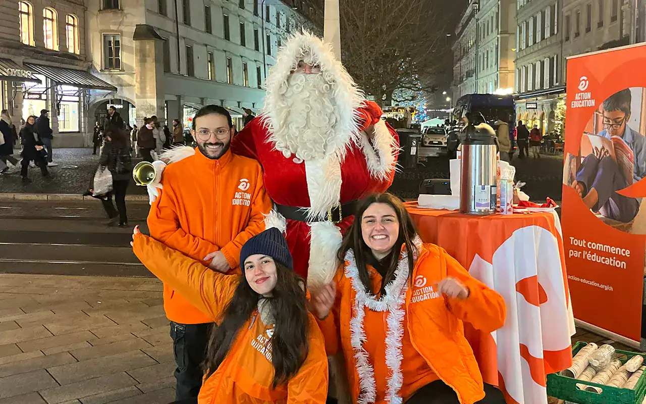 On 17 December, Action Education Switzerland took to the streets of Geneva for the first time, organising an awareness-raising day at the Rues Basses on Place du Molard. The aim was to talk to passers-by about one of the key issues in our mission: the need to protect children from violence. right to education all over the world.